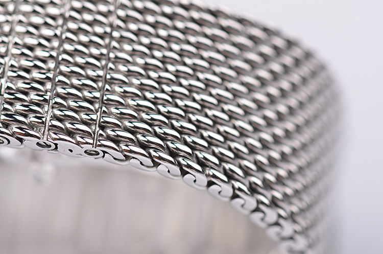 表带:精钢编织表链,腕周约195MM,另有一条全新后配海奕施外黑内蓝橡胶表带及表扣,共计两条表带,两枚表扣