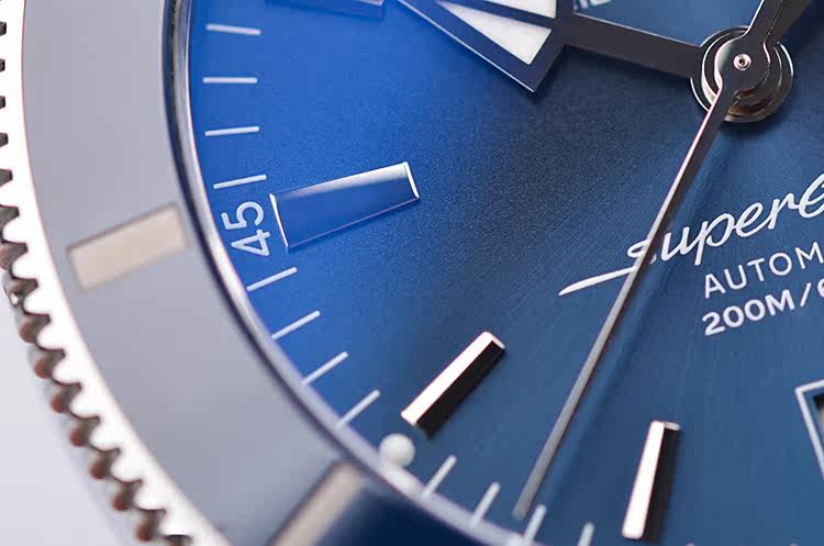 表壳:精钢表壳,蓝色陶瓷单向可旋转计时表圈