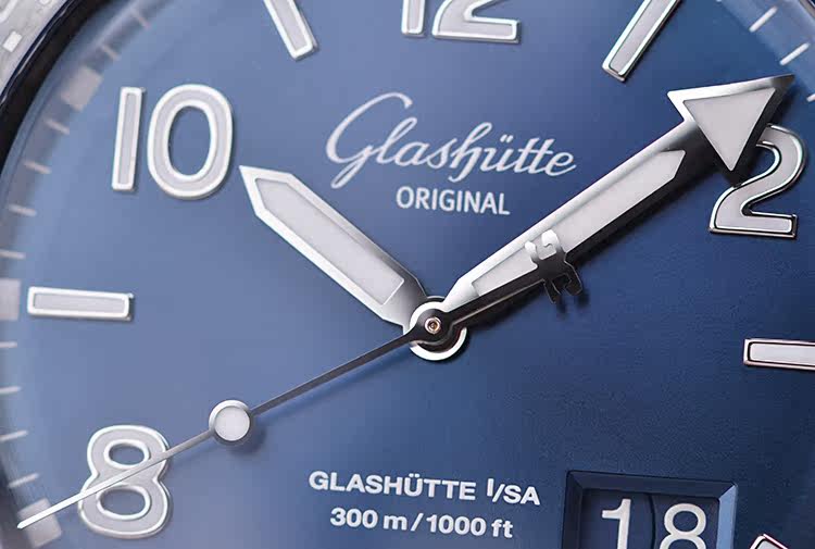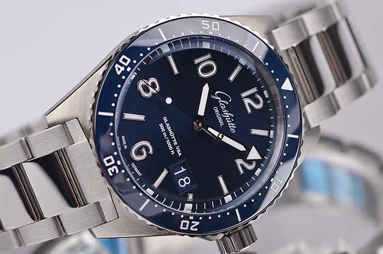 表盘:立体蓝色表盘,夜光刻度及指针,大日历视窗