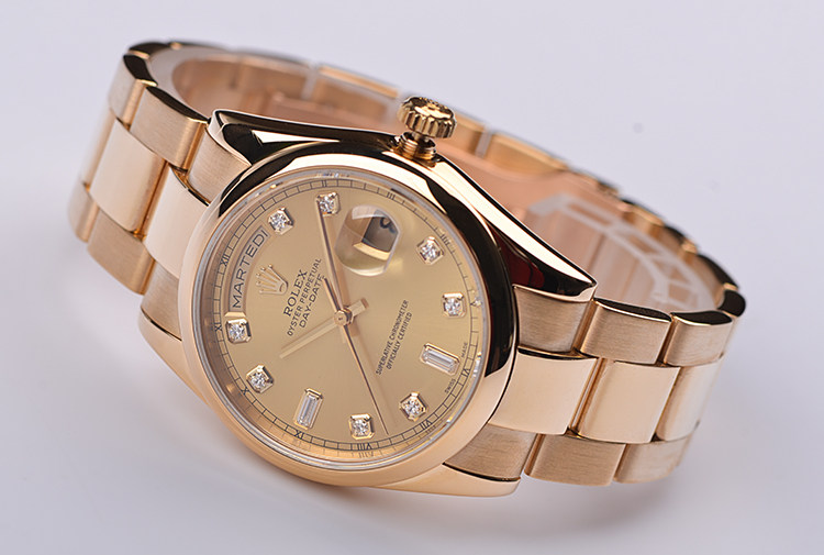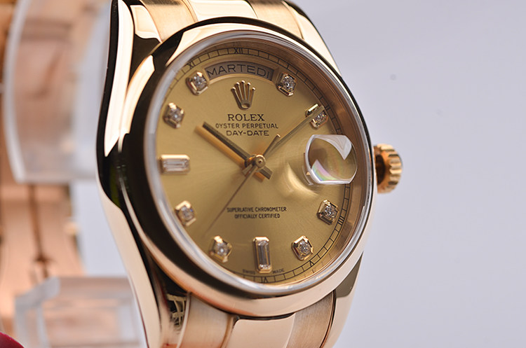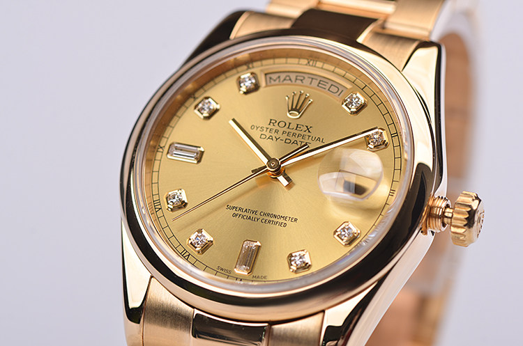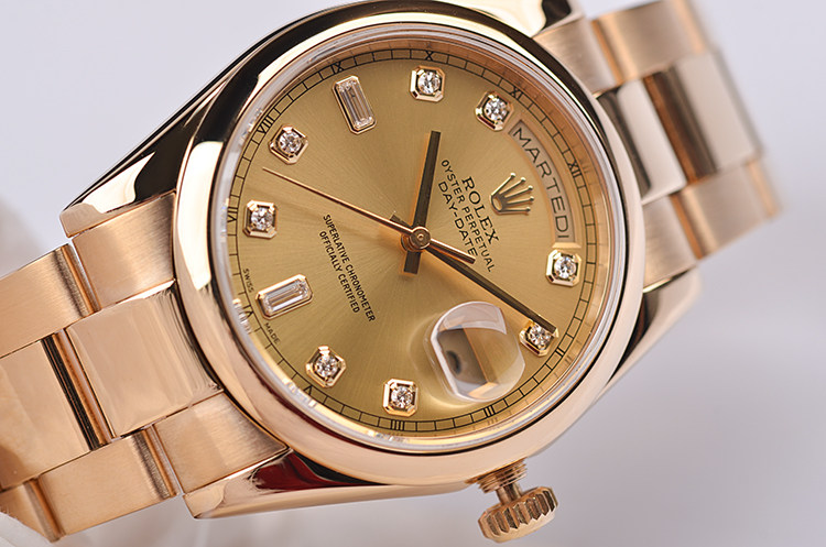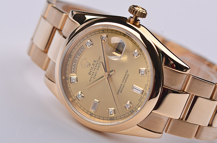 总统型星期日历型36MM全黄金刻度钻自动机械男表