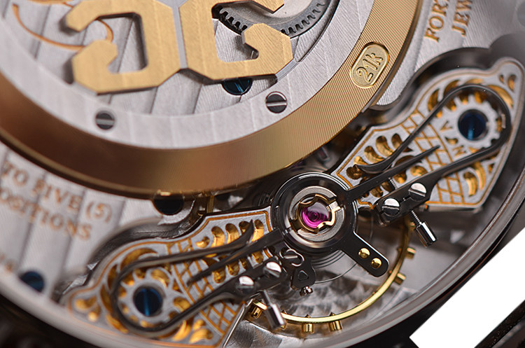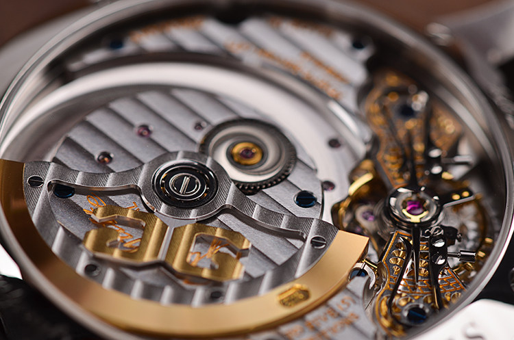 机芯:自动机械 CAL.90-02机芯,双鹅颈微调,21K金边配重镂空自动陀,55小时动力储备