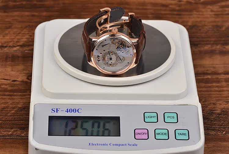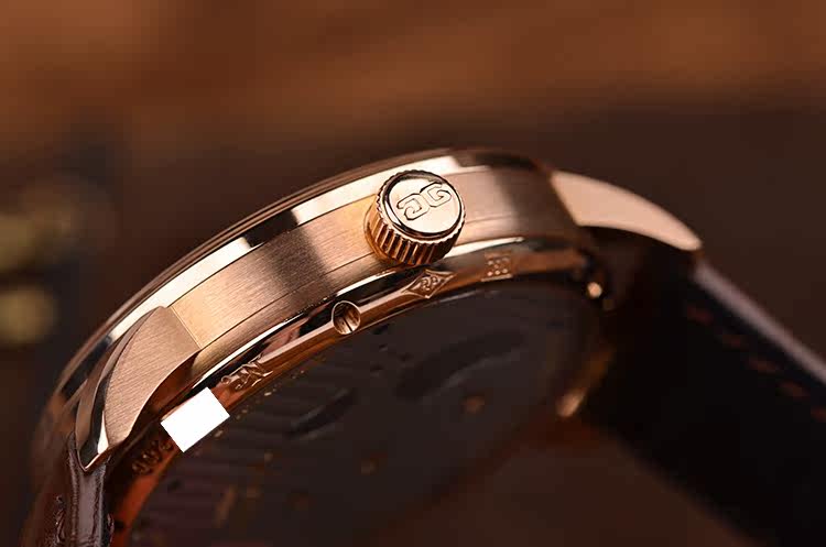 参议员限量版玫瑰金鹅颈反做42MM动显手上链折叠扣皮带男表