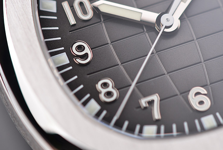 表盘:立体深灰色浮雕表盘,夜光阿拉伯数字刻度及指针