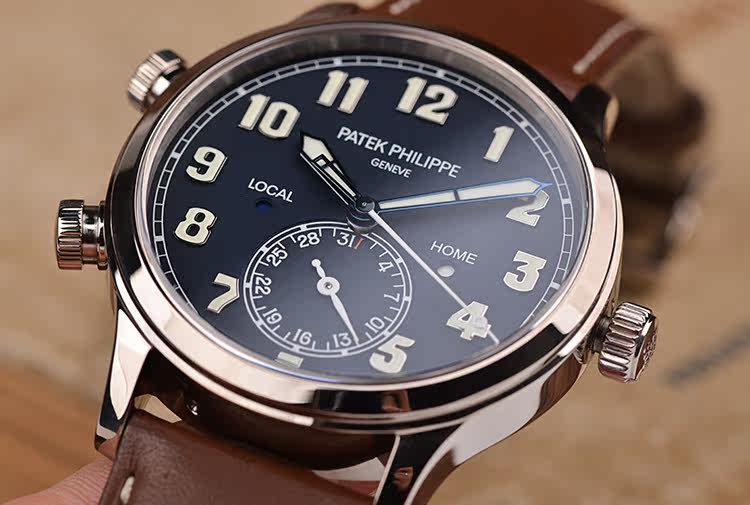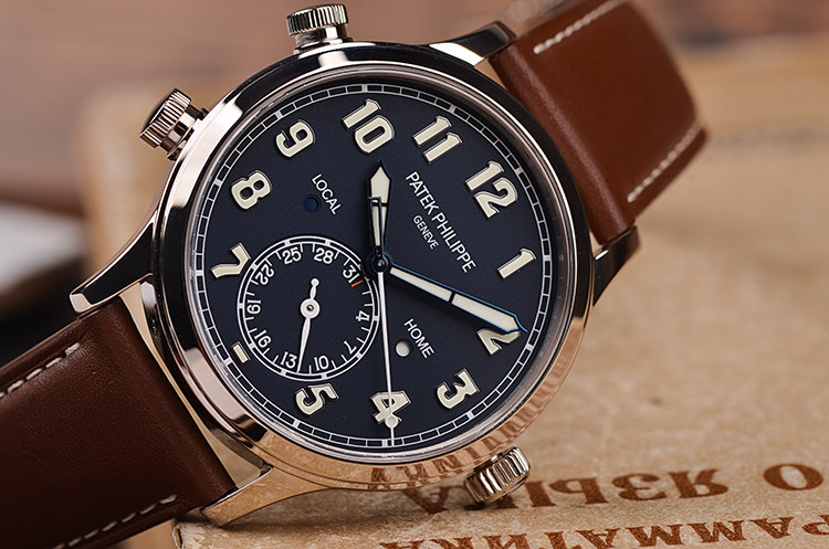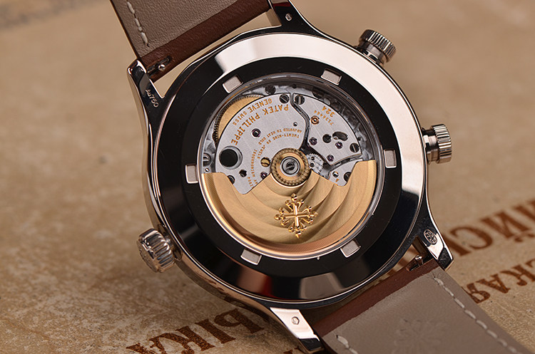 飞行家旅行时间白金两地时日历显示自动机械男表