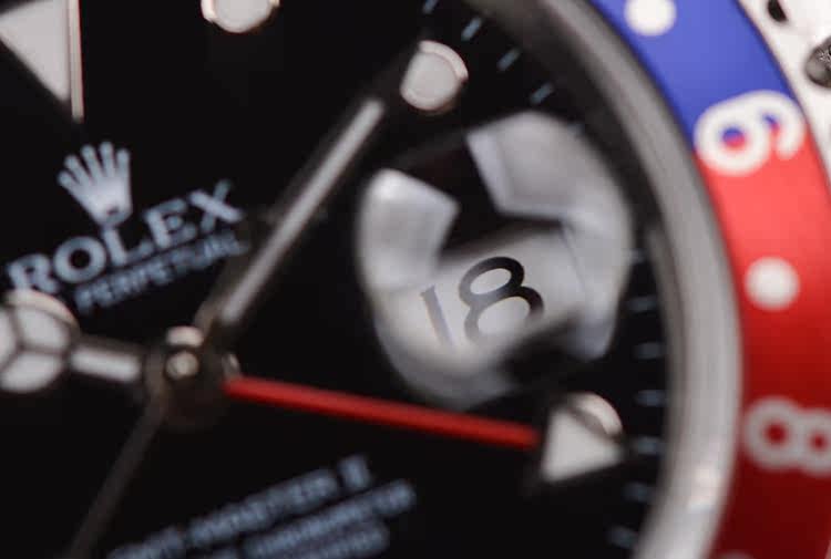 劳力士CAL.3185型机芯,自动机械,天文台认证,31钻,摆频28800,动力储存约48小时。走时状态极嘉。
