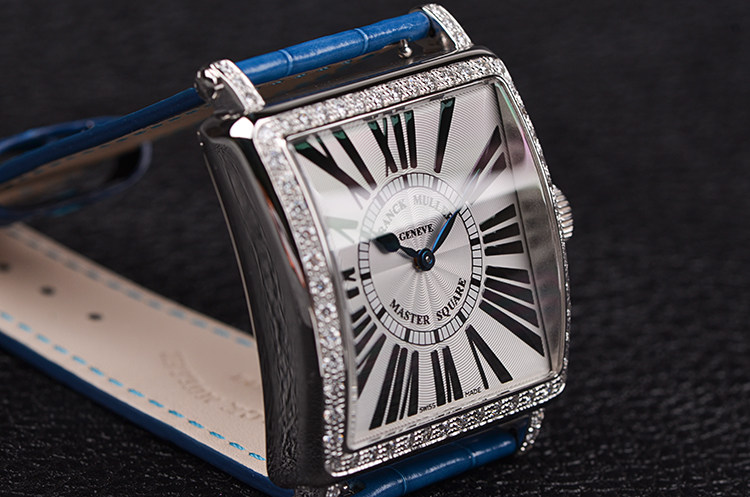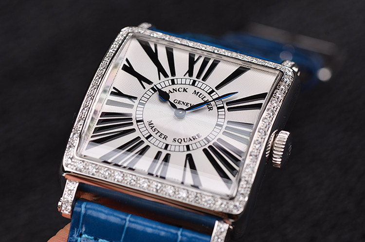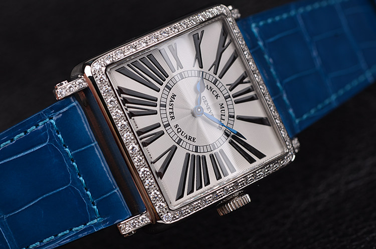 方形精钢原镶钻石英皮带腕表