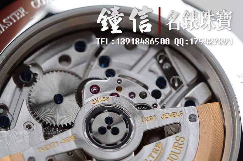 积家自产的CAL.975机芯,由230个零件组成,29钻,摆频28800,动力储存约48小时。22K玫瑰金自动陀边。JLC 1000小时测试新款机芯。