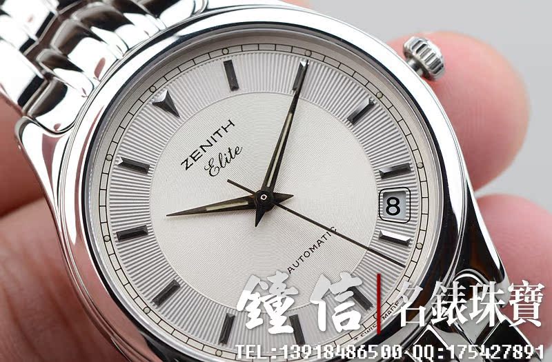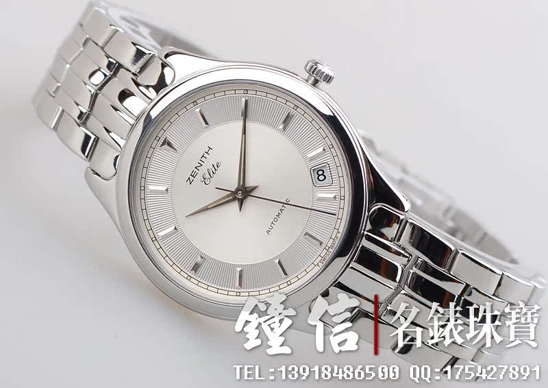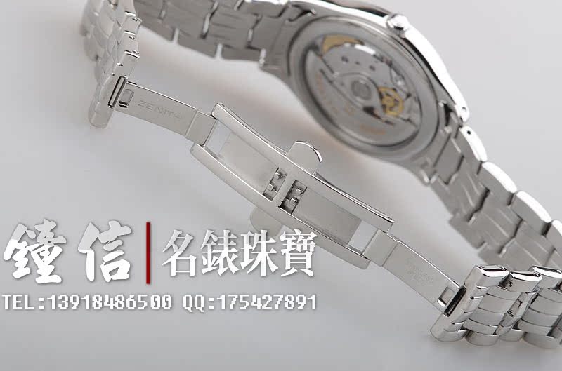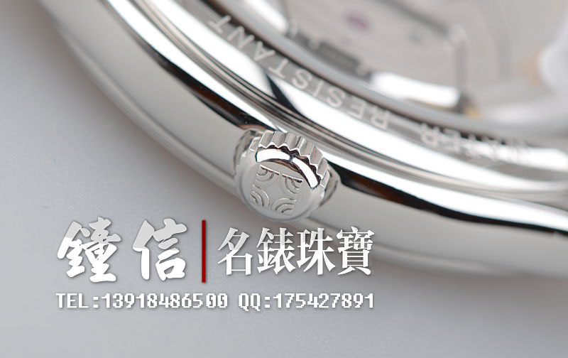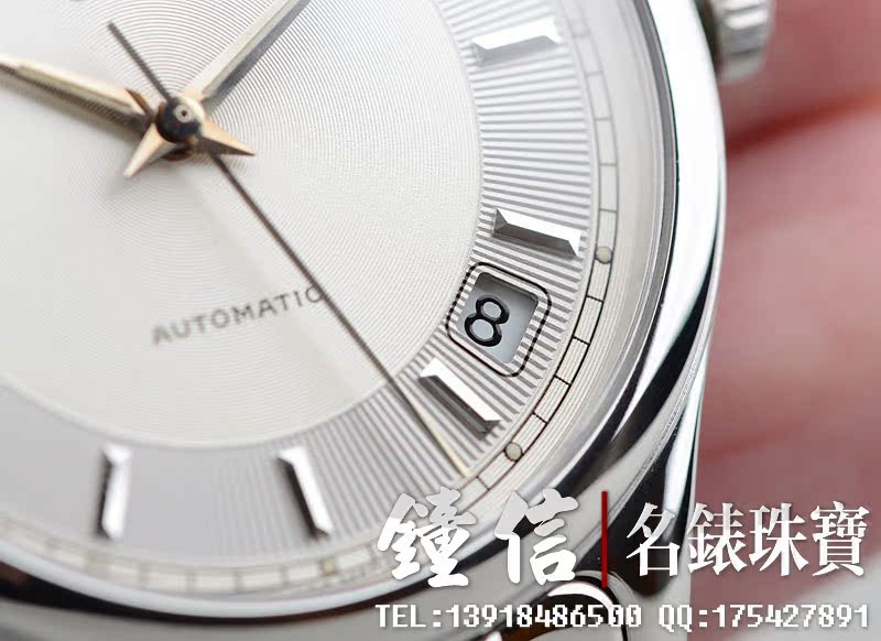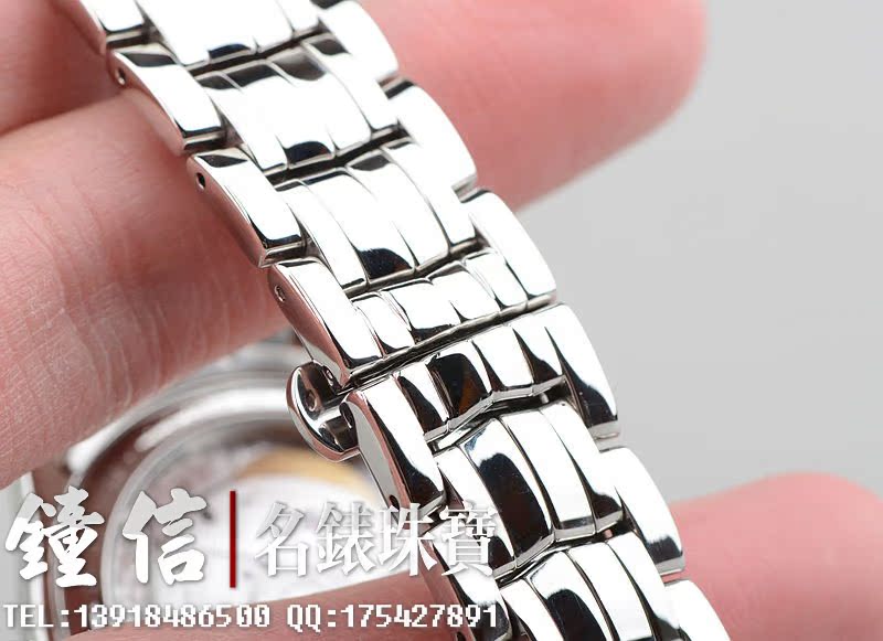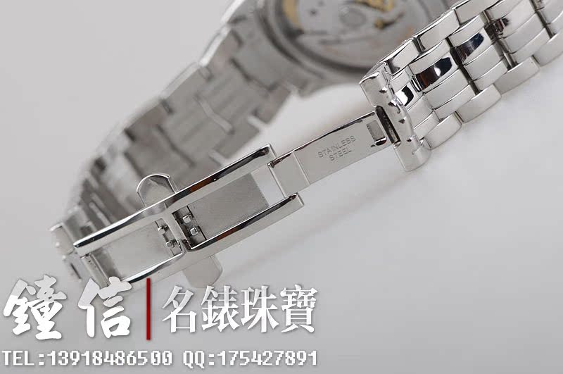 精钢表壳及链带,双向按压式折叠表扣。蓝宝石水晶镜面及底盖。银白色立体表盘,夜光时分针,路轨式样刻度圈。口径35MM*6MM不含表把,含表把约37MM。防水30M。