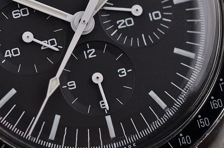 表盘:黑色计时表盘,夜光刻度及时分针
