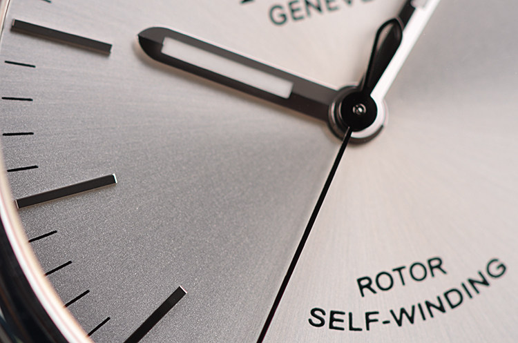 表盘:立体银灰色表盘,夜光时分针,日历显示