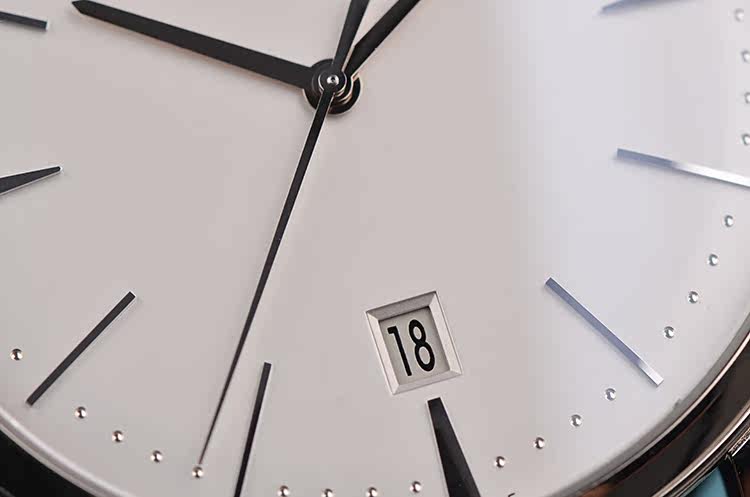 表盘:立体银白色表盘,白金刻度及指针,日历显示