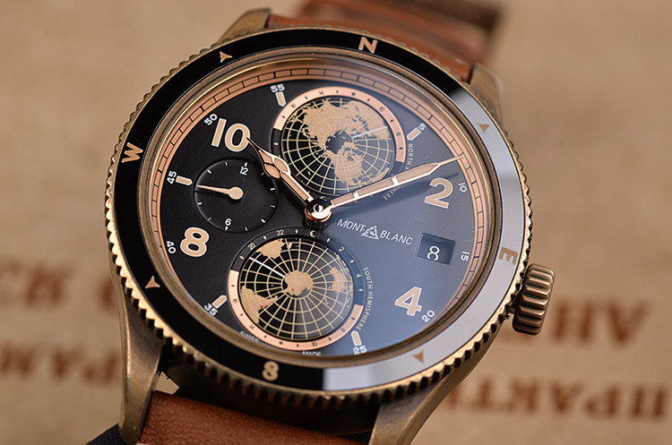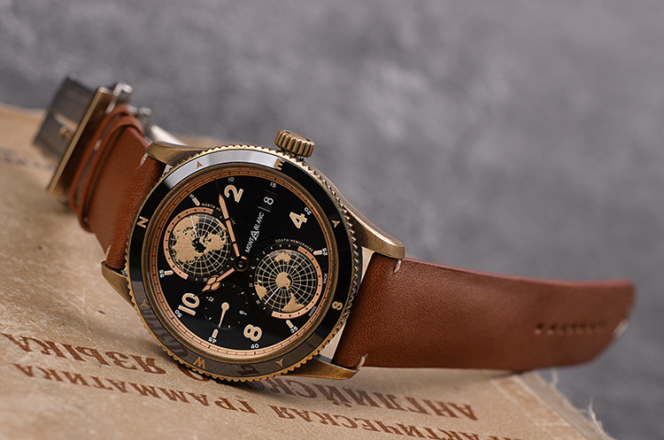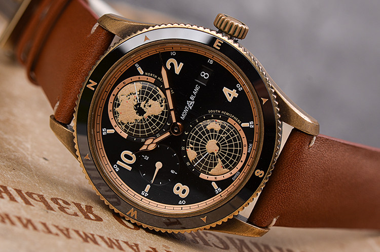 1858系列限量版青铜材质南北半球世界时日历显示自动机械折叠扣皮带男表