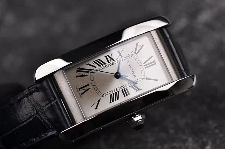 表盘:立体银灰色表盘,蓝钢指针,黑色罗马数字刻度