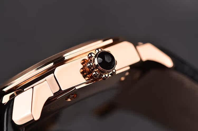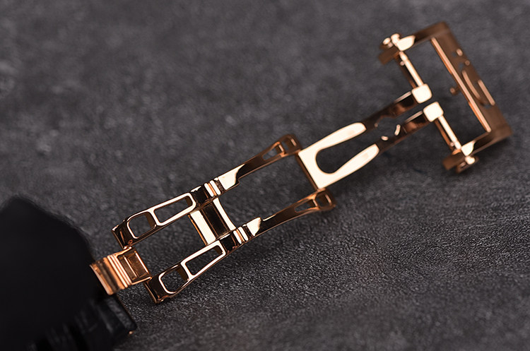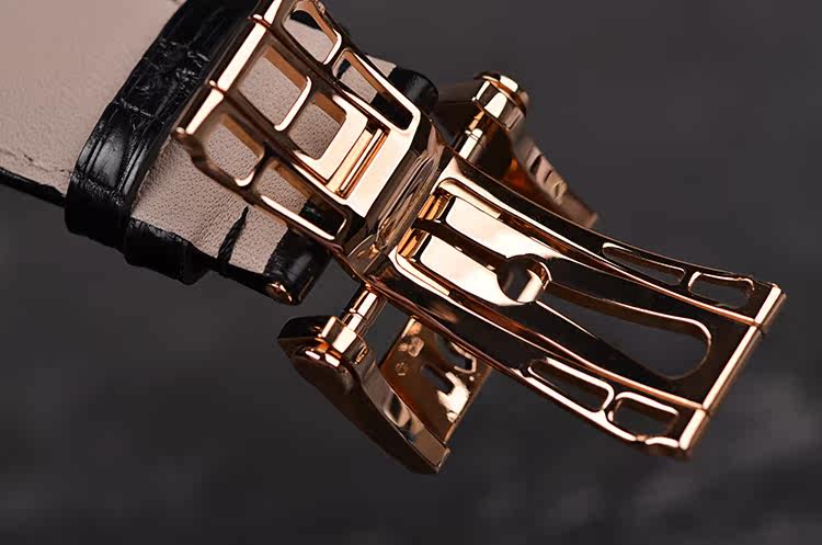 玫瑰金独眼龙跳时日历逆跳自动机械折叠扣皮带男表
