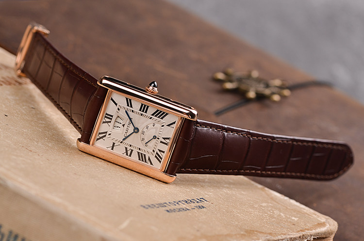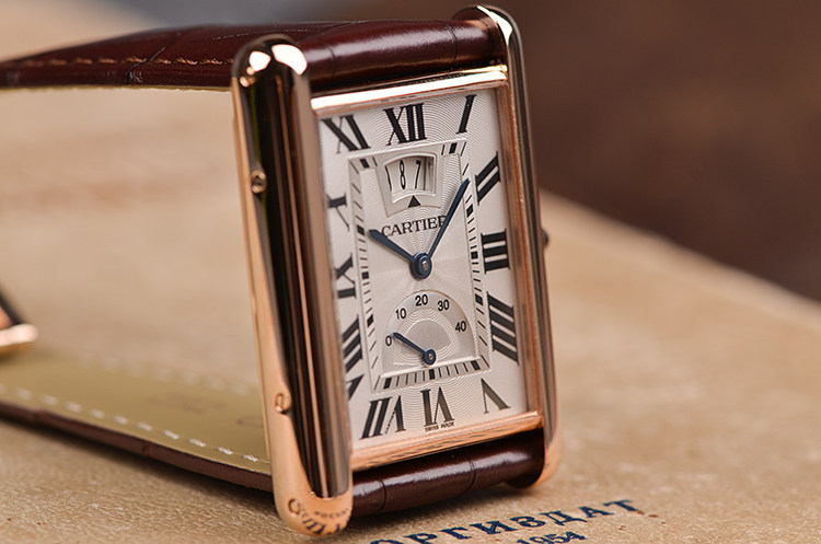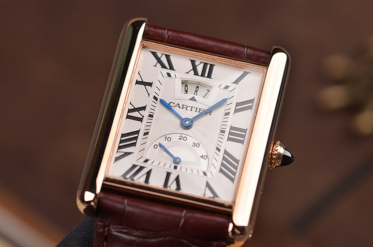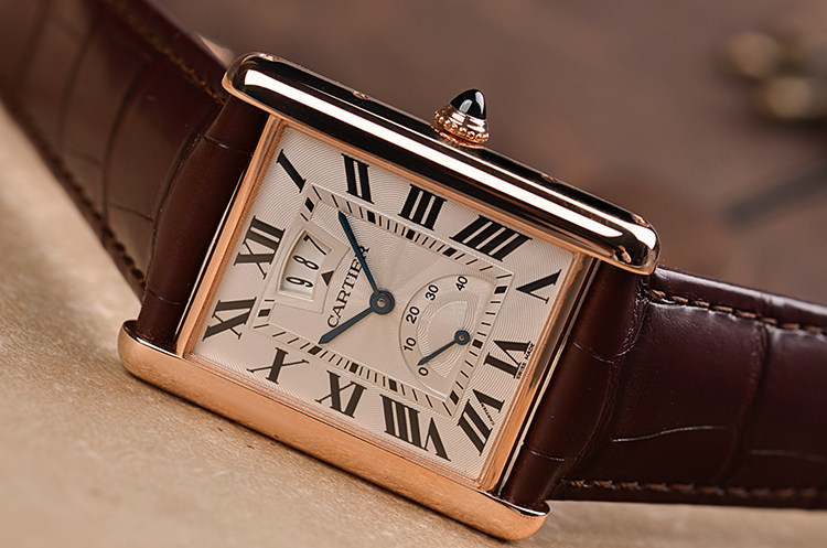 坦克玫瑰金动显大日历手上链折叠扣皮带男表