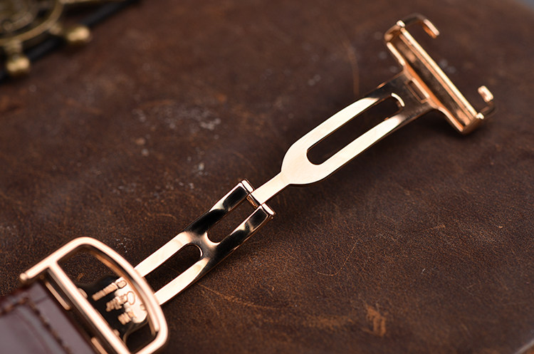表壳:18K玫瑰金表壳及折叠表扣,蓝宝石表冠
