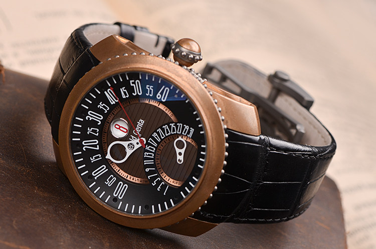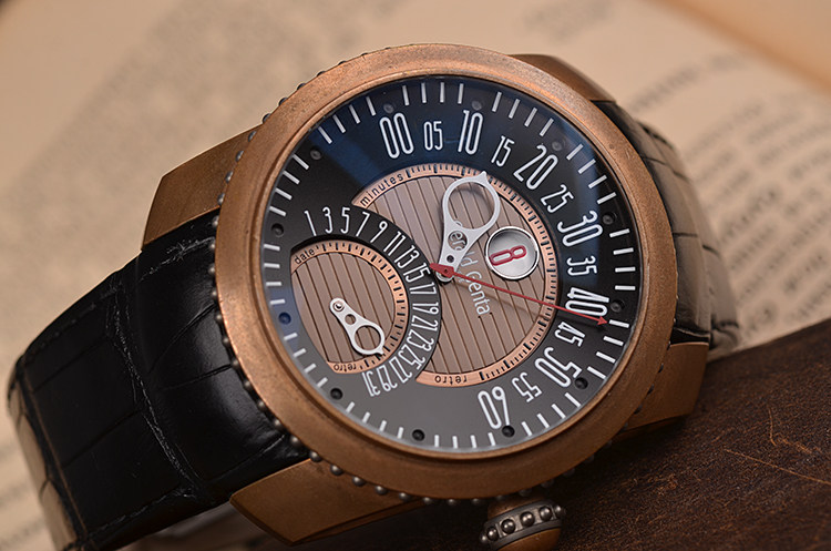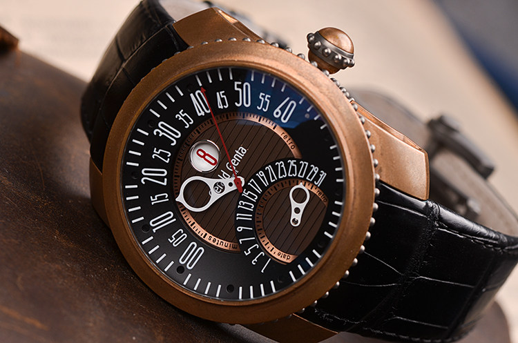 青铜及钛金属独眼龙跳时日历逆跳自动机械折叠扣皮带男表