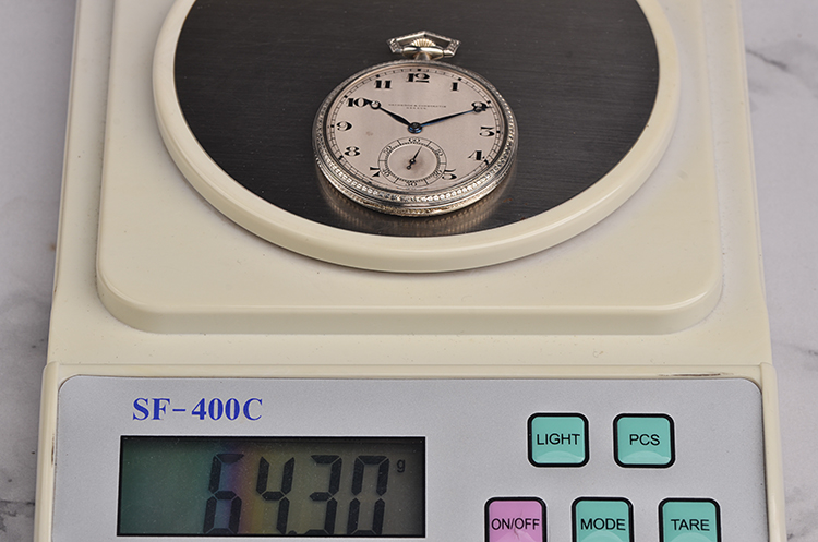 【售价26800RMB 18K白金雕花45MM三开式小三针怀表】