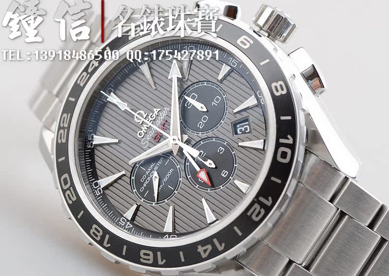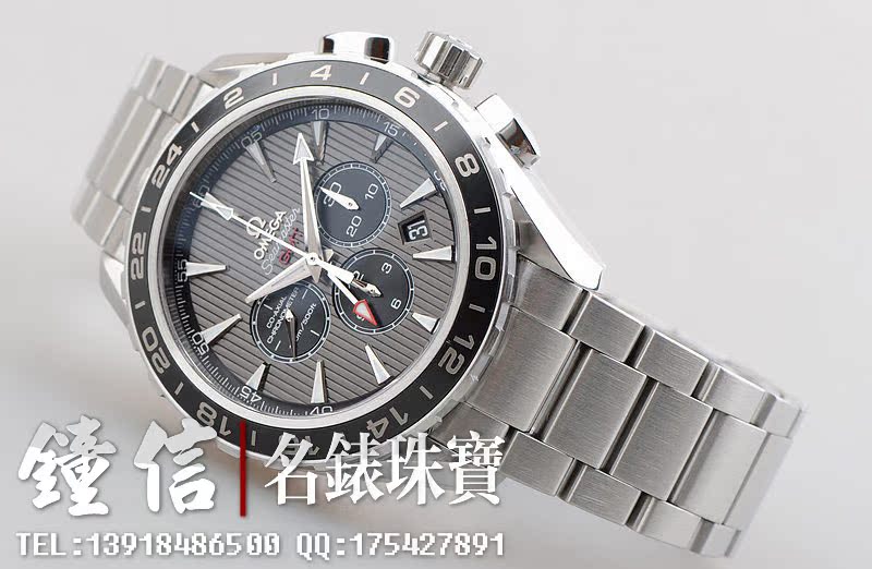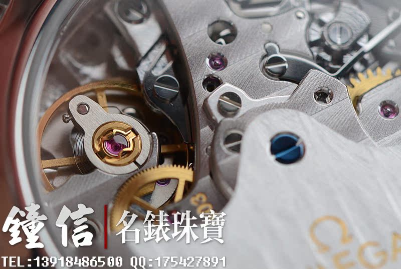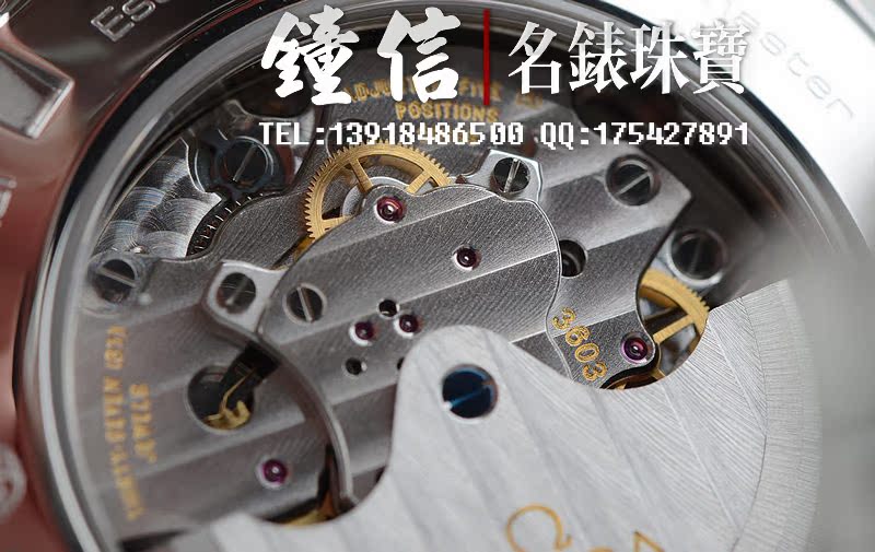 欧米茄自产的CAL.3603机芯,自动机械,天文台认证,37钻,摆频28800,动力储存约55小时。计时,GMT,日历显示功能。