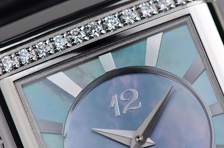 表壳:精钢表壳及折叠表扣,蓝色贝母面表框原厂镶嵌双排壕华天然美钻
