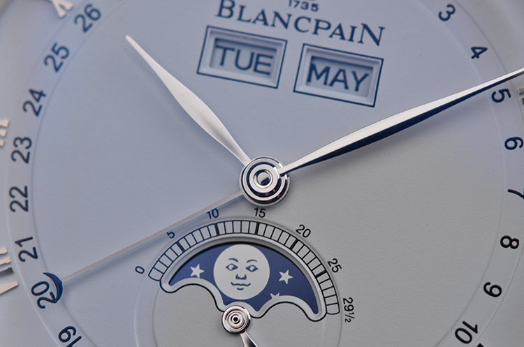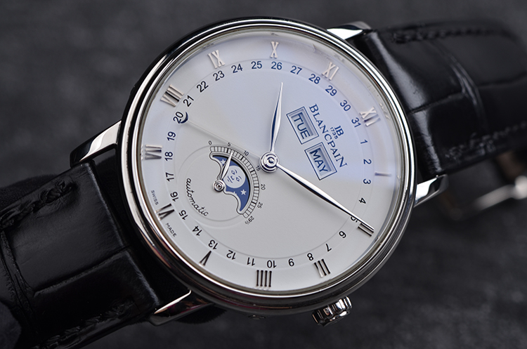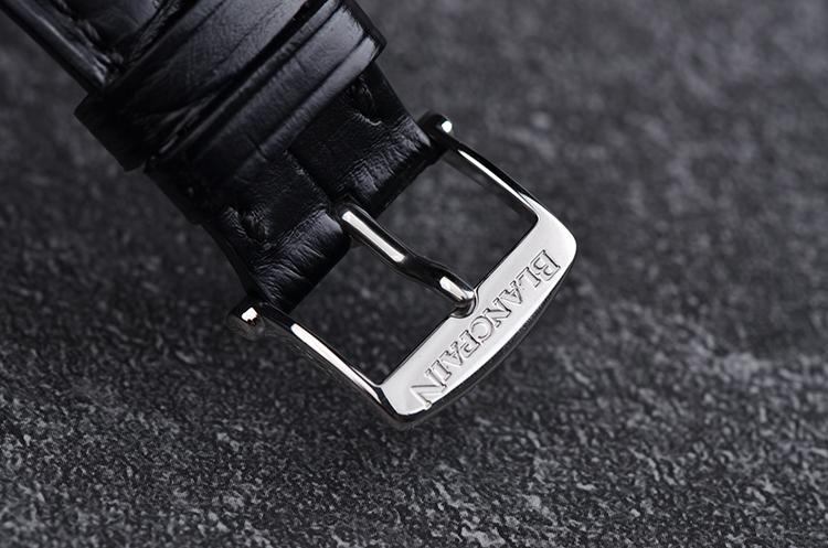 表盘:立体白色表盘,月份,星期,日历,月相显示