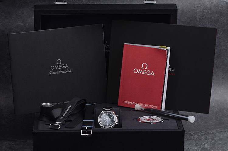 附件:原装大表盒,目镜,螺丝批,腕表说明书,表带更换说明书,登月纪念册,保修卡遗失。