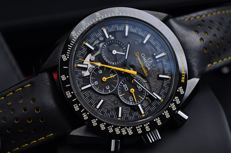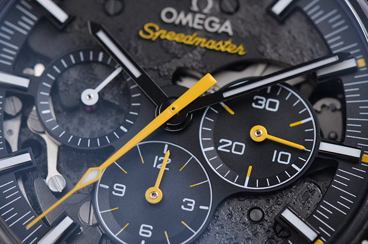 表盘:月球表面元素镂空计时表盘,夜光刻度及指针