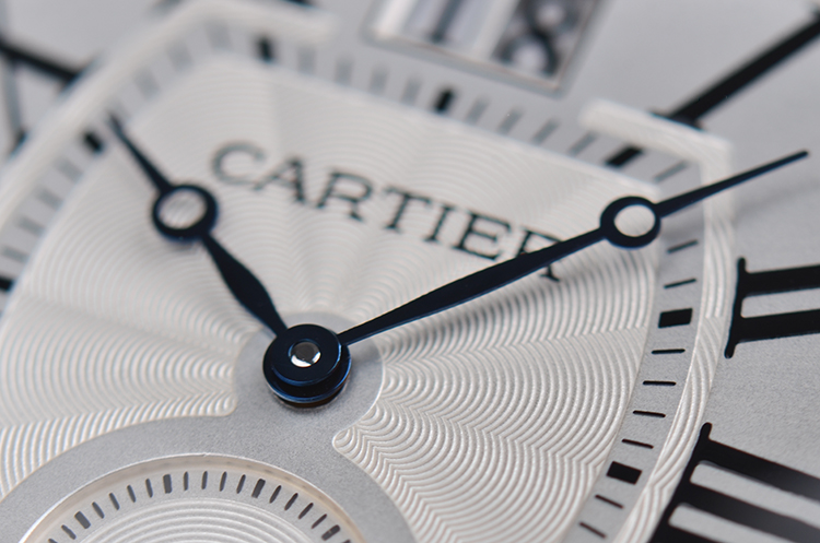 表盘:镀银立面雕纹表盘,蓝钢宝玑指针,罗马数字刻度,大日历视窗