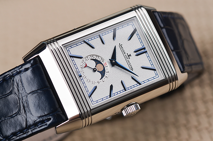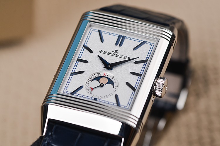 翻转系列双面表盘两地时月相日历昼夜显示手上链皮带男表
