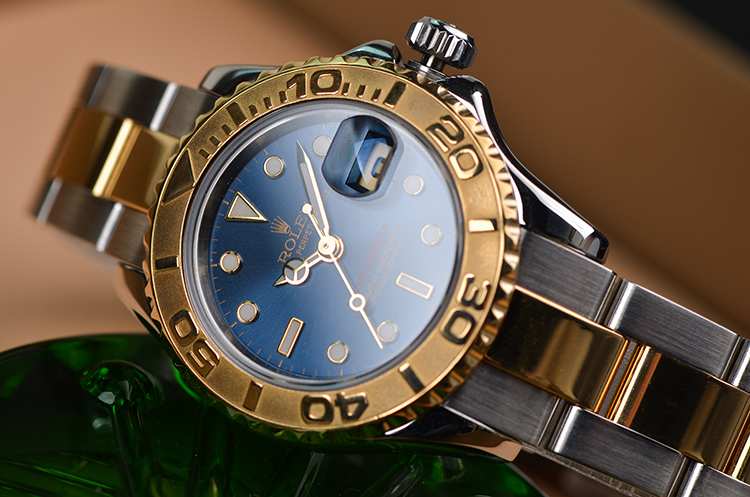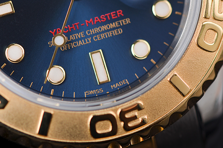 表盘:立体蓝色面盘,黄金夜光刻度及指针