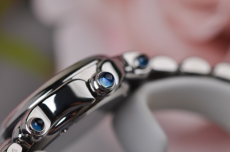 表壳:精钢表壳,表冠及表耳镶嵌共计4颗蓝色宝石