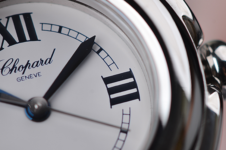 表盘:立体白色表盘,5颗活动钻,蓝钢时分针,罗马数字刻度