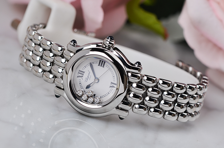 快乐钻系列5颗活动钻26MM石英钢带女表