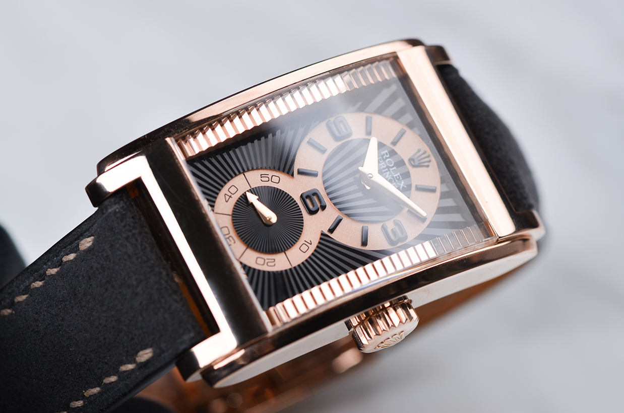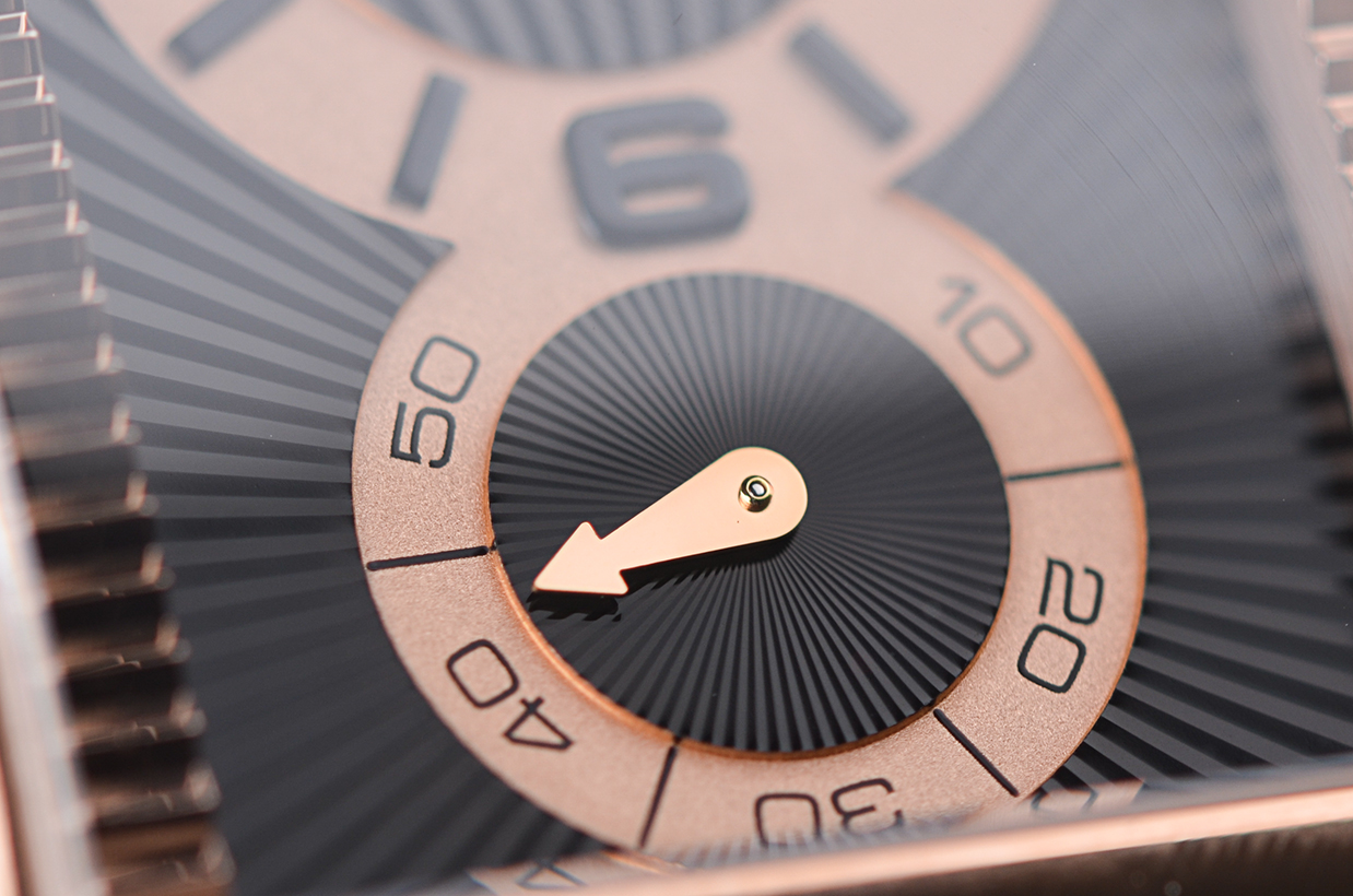 表盘:立体玫瑰金及黑色镌刻表盘,玫瑰金指针