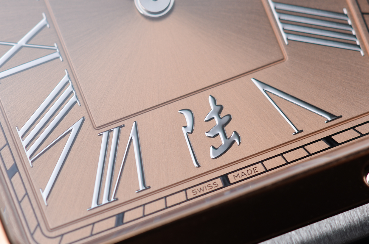 表盘:立体玫瑰金色表盘,罗马数字刻度,汉字“陆”时标