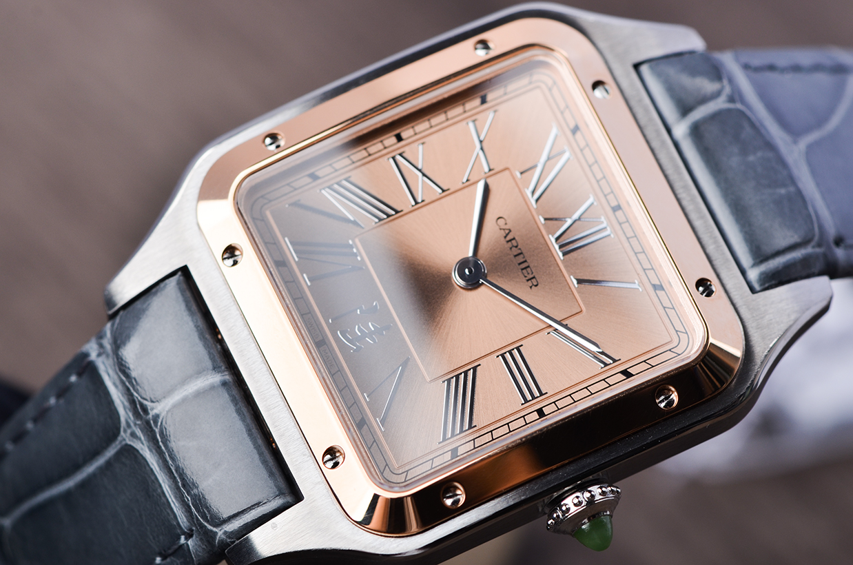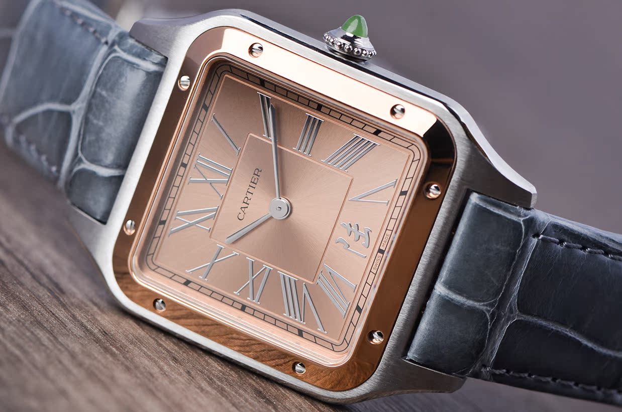 山度士系列中国限量版玫瑰金及钢手上链皮带男表