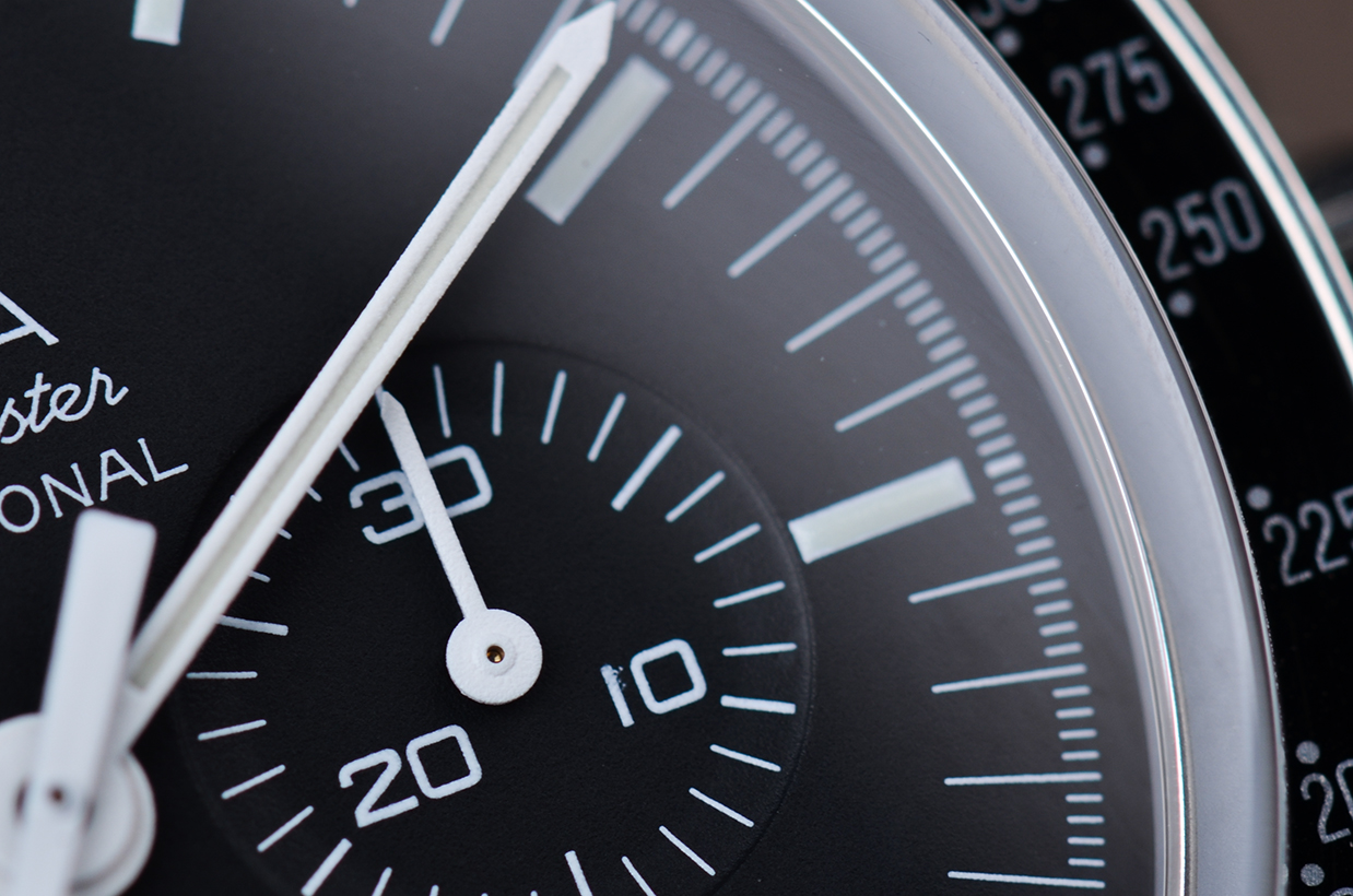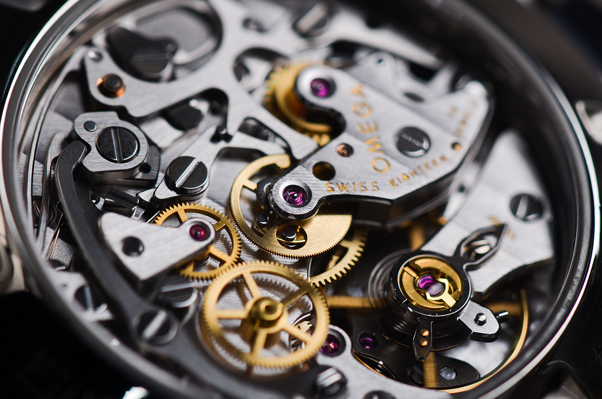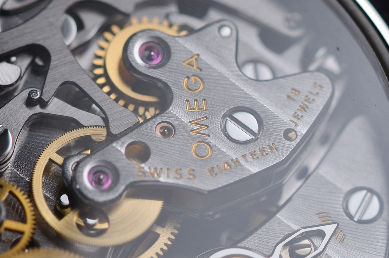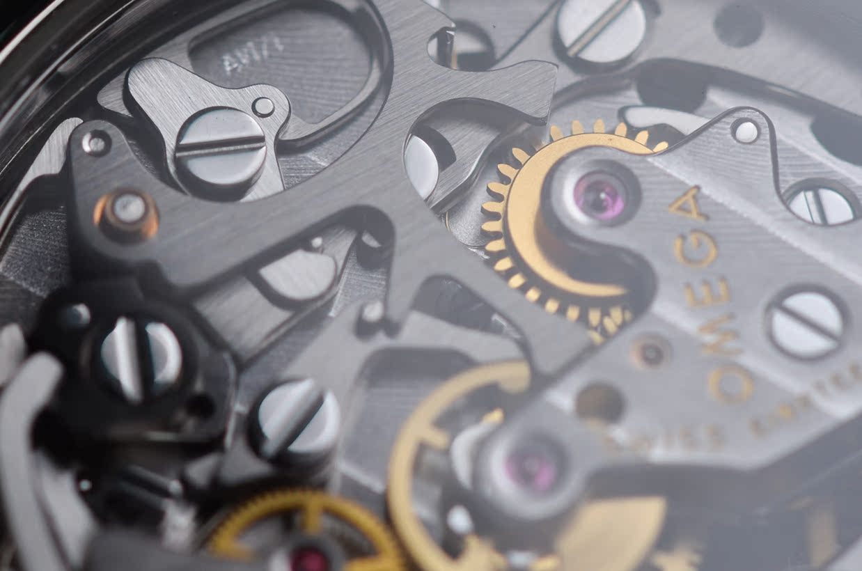 At the heart of this chronograph is OMEGA’s mechanical calibre 1863, a subtly decorated variant of the legendary manual-winding movement worn on the Moon, visible through the watch's sapphire exhibition caseback.