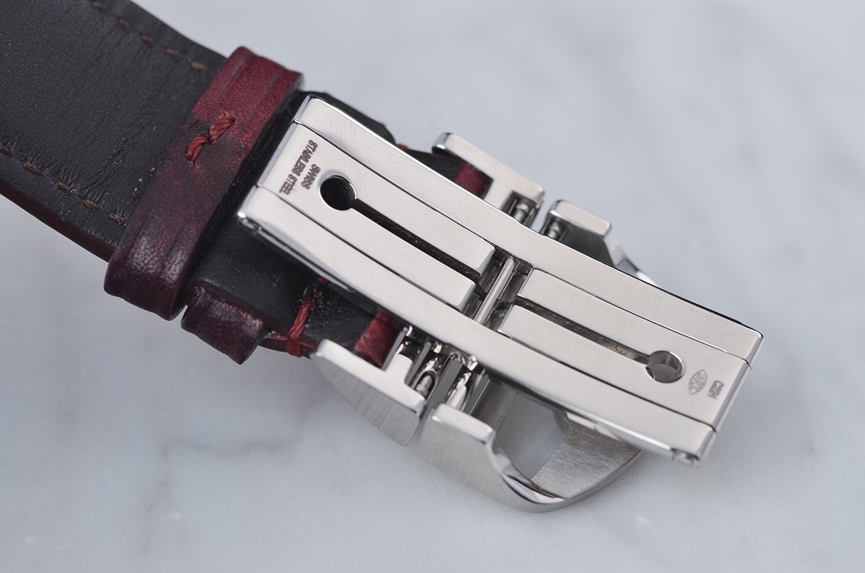 表带:原厂酒红色牛皮表带,另有一条全新原厂棕色牛皮表带,共计2条原装表带