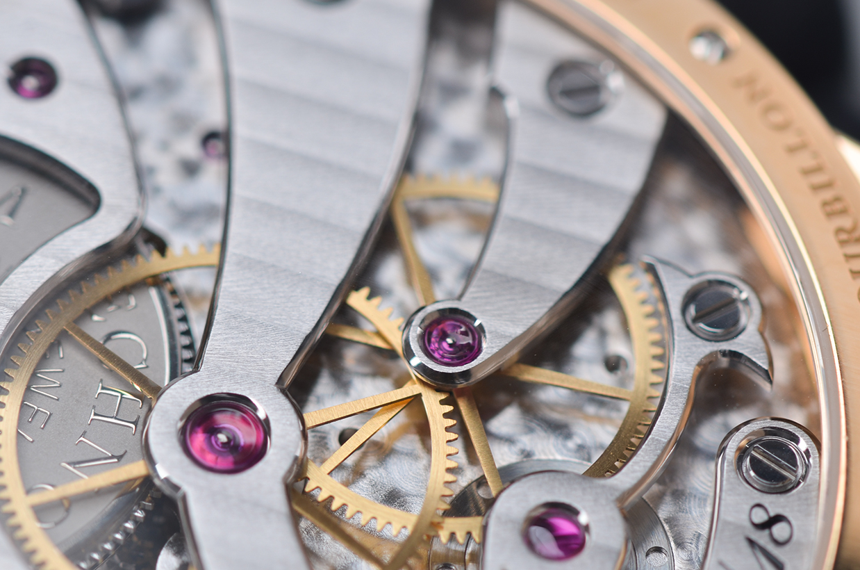 鎏金系列限量版玫瑰金蓝色大明火珐琅盘陀飞轮手上链男表