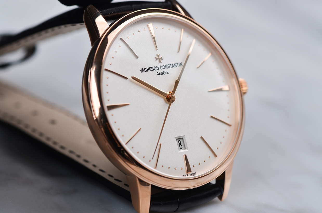 传承系列玫瑰金大三针日历自动机械皮带男表