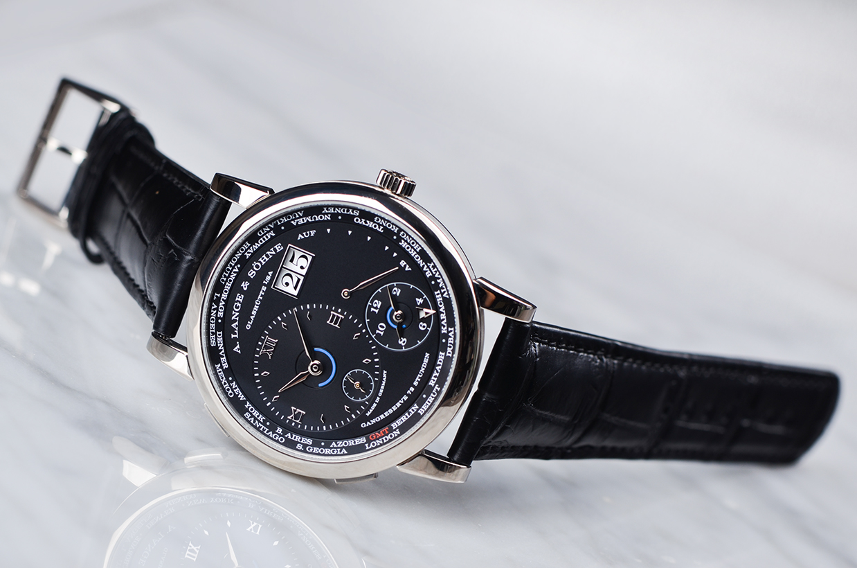朗格1白金世界时间41.9MM大日历动显3日链皮带男表