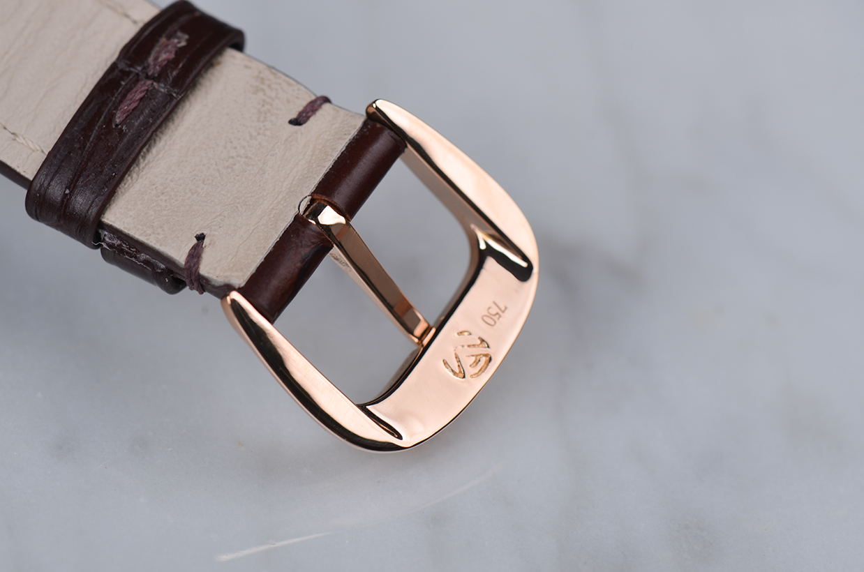 酒桶型玫瑰金三地时计时日历自动皮带男表