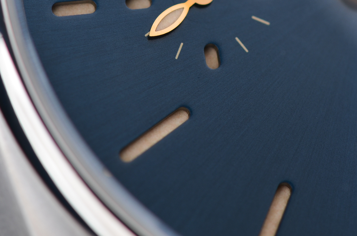 表盘:立体三明治蓝色旭日纹表盘,夜光刻度及指针
