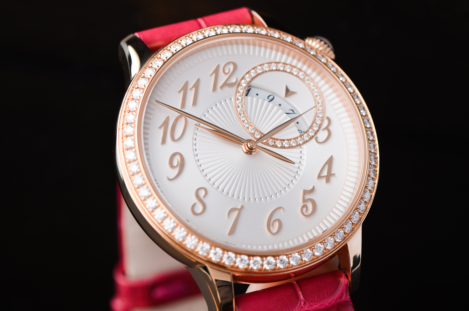 银色褶皱纹理表盘灵感源自高级定制服饰,细腻而充满艺术感。搭载江诗丹顿自产 1088 自动上链机芯,透过蓝宝石底盖可尽览机芯打磨工艺,动力储备约 40 小时。