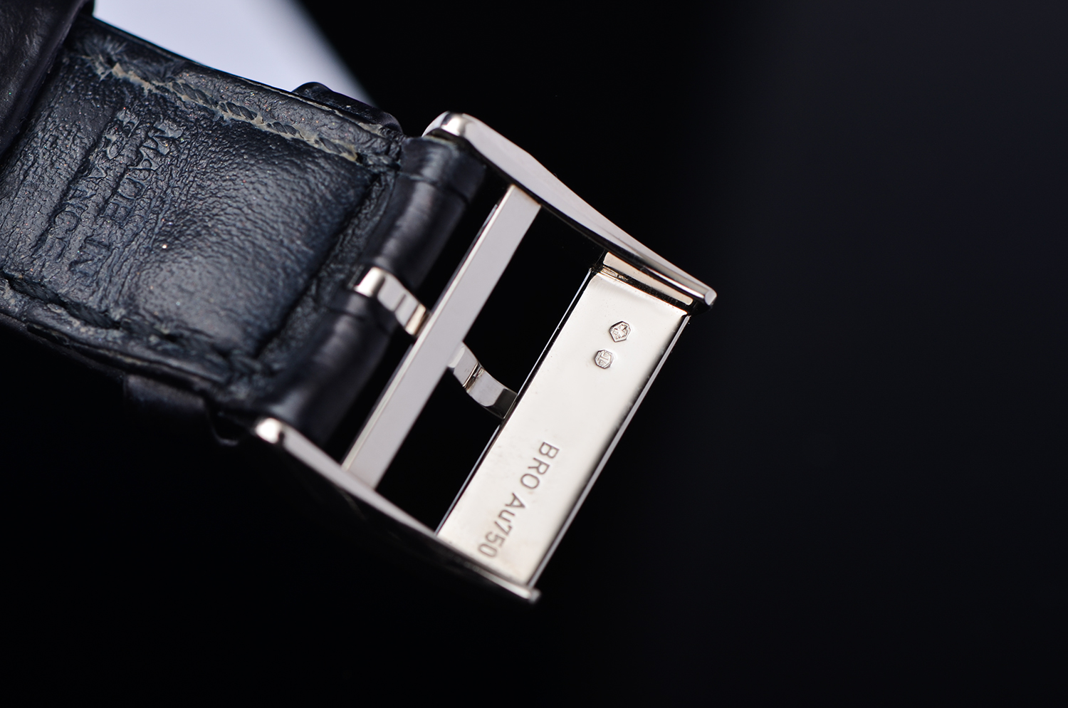35 毫米的 18K白金表壳,配以实心银打造的银白表盘,线条极简而比例完美。修长的金质指针与刻度在光影中细微闪烁,映衬出一种无声的尊贵感。