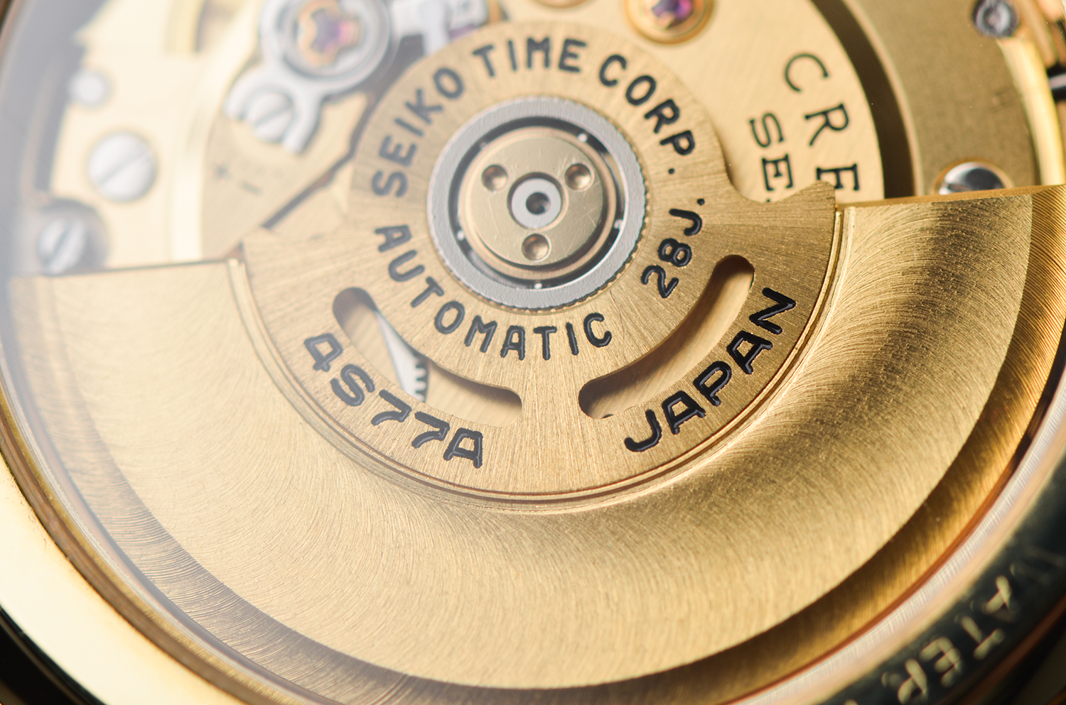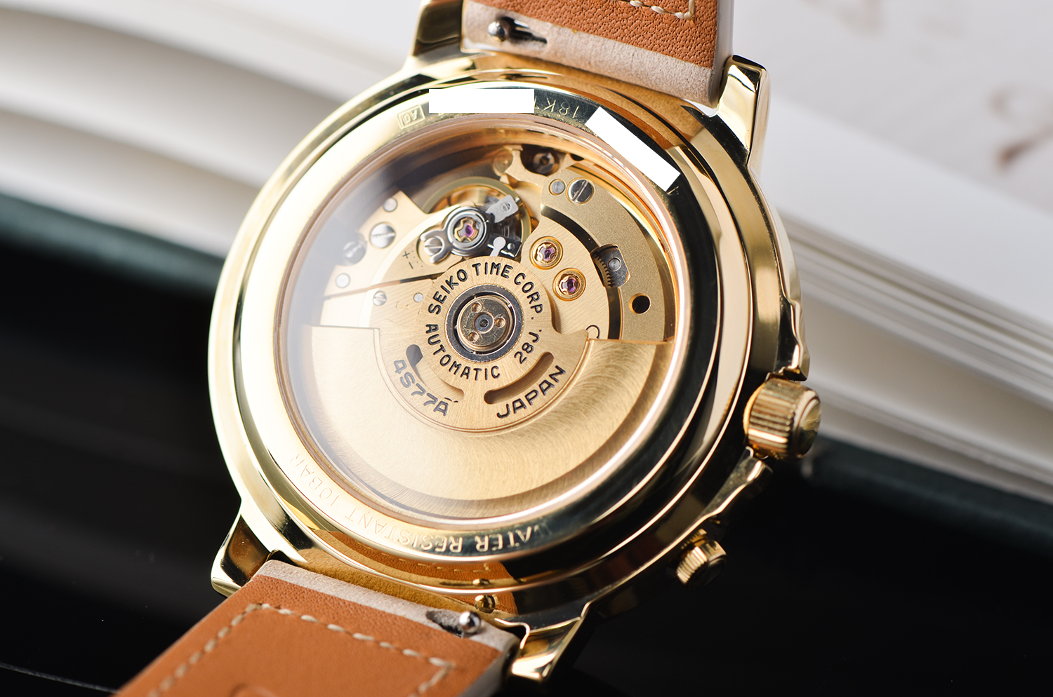 腕表内部搭载 Seiko Cal. 4S77 自动机芯 —— 这是日本高端制表史上最值得称道的复杂机芯之一,具备精准稳定的性能与极高装饰水准。每一次指针的回跳,都是机械之美的瞬间绽放。