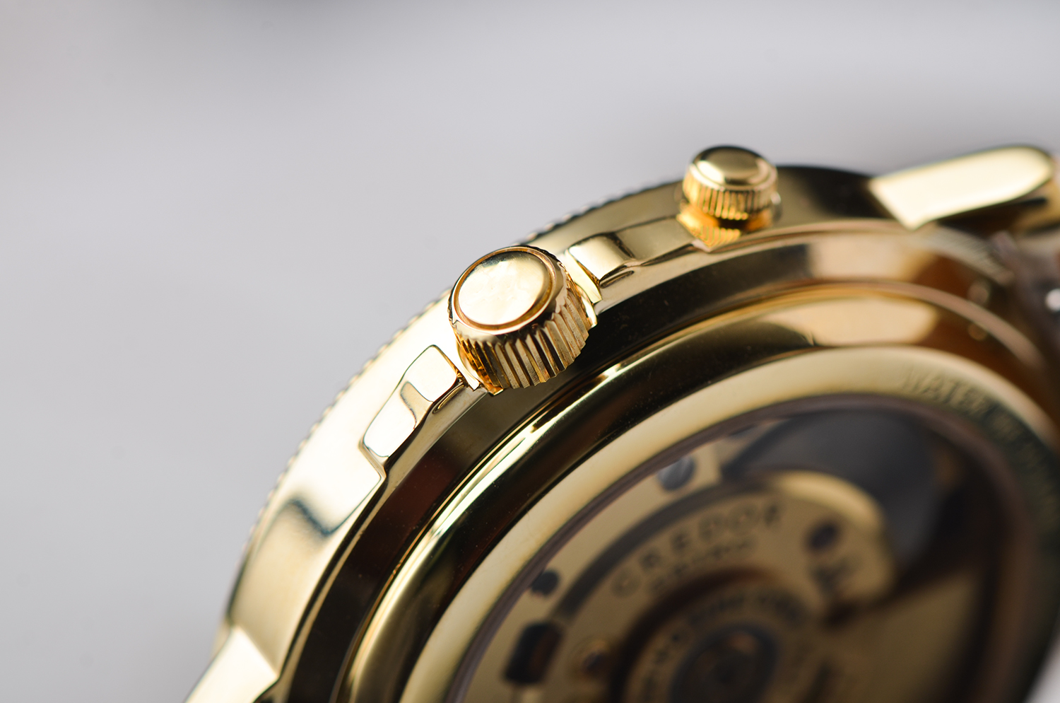 贵朵系列黄金双时区星期日历39MM自动皮带男表