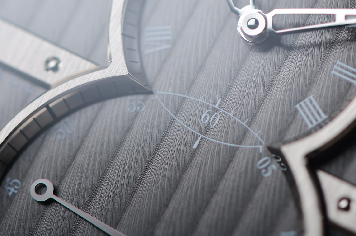 灰色盘面搭配精钢表壳,散发出一种冷静的优雅与理性的从容。
