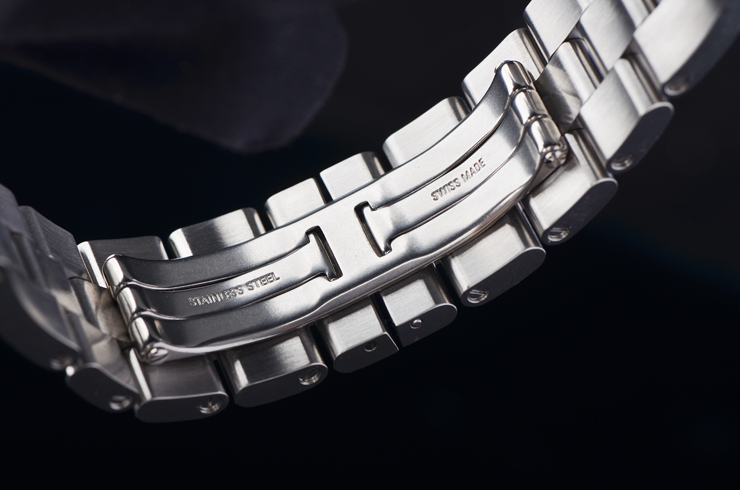 不锈钢枕形表壳,独特的流线造型呼应赛车与速度的灵感;蓝宝石水晶镜面搭配放大日历窗,令读时更清晰;银色罗马数字表盘与剑形夜光指针,呈现经典优雅与运动活力的完美融合。