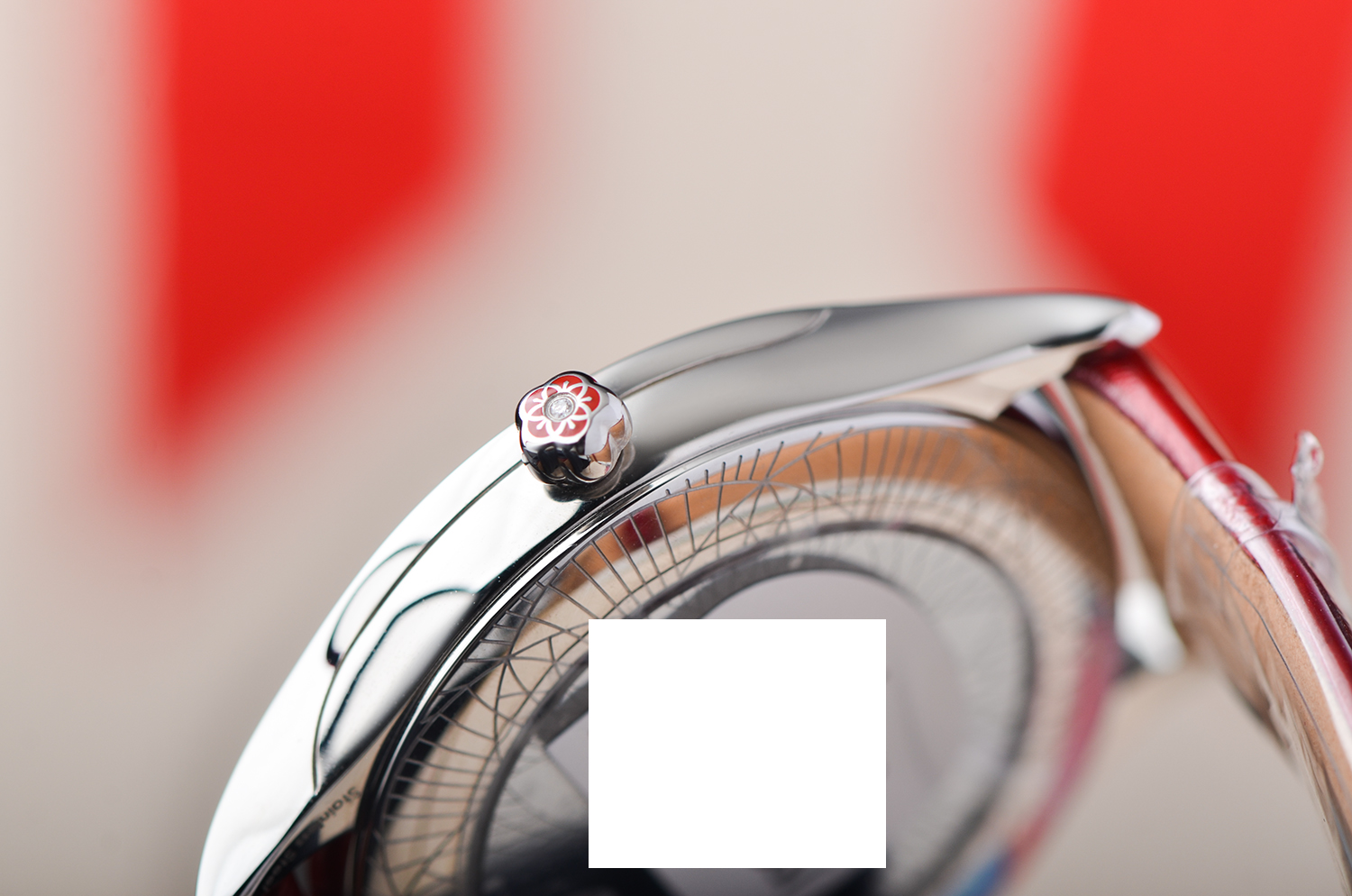 这款腕表拥有 36mm 精钢表壳,流线型设计轻盈贴腕,两侧镶嵌 38 颗闪耀钻石,低调中彰显奢华。红色烤漆表盘配红色鳄鱼皮表带,让整枚腕表在任何场合都成为视觉焦点。